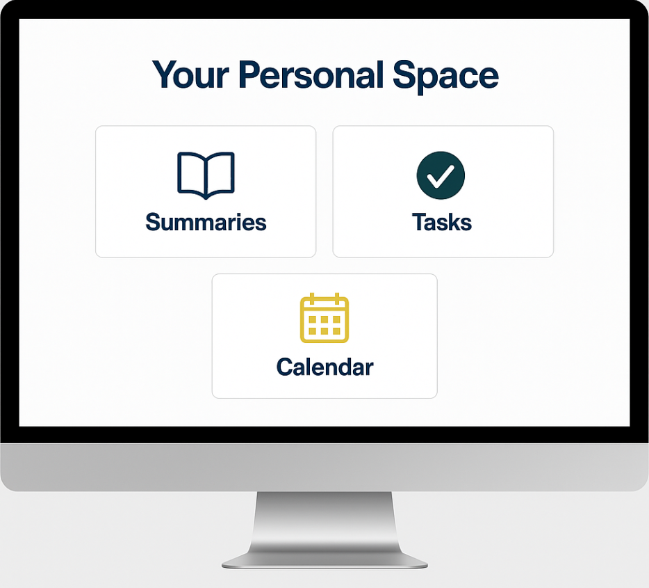 Thirdly, it will appear this after signing up or loging in. I recommend you to first click on calendar so the app knows what you need to do, second click on tasks so you organize what you need to do first and finally click on summaries and start studying!