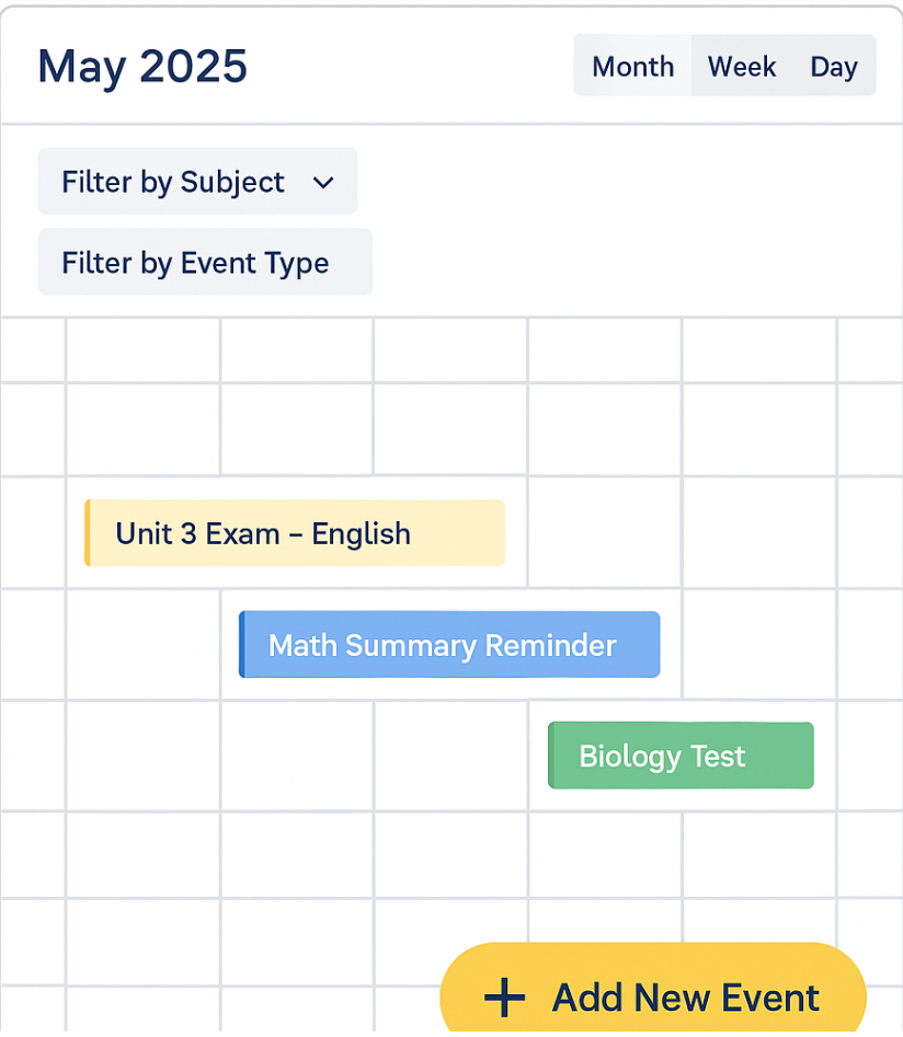 This app called 'ceu's helper' only works with ceu students and the calendar is organised by months. You will have to register with your ceu email. Once you have done that, you will have to complete the calendar so that it can recommend you. After all of this, you will just have to search for the subjects you want to have summarized texts or mind maps, the unit of which is the exam going to be and the grade you are in.