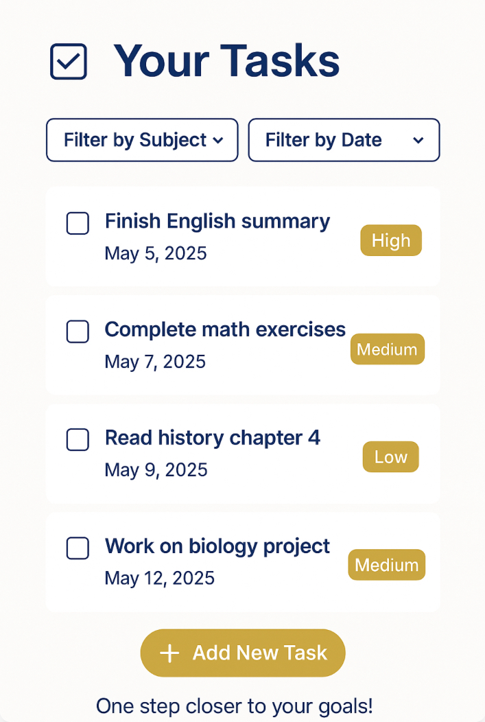 If you want to follow my advice, click on calendar so you can organize your days before you have exams and you will be on time to every task or exam. There you will see al your exams and tasks dates.